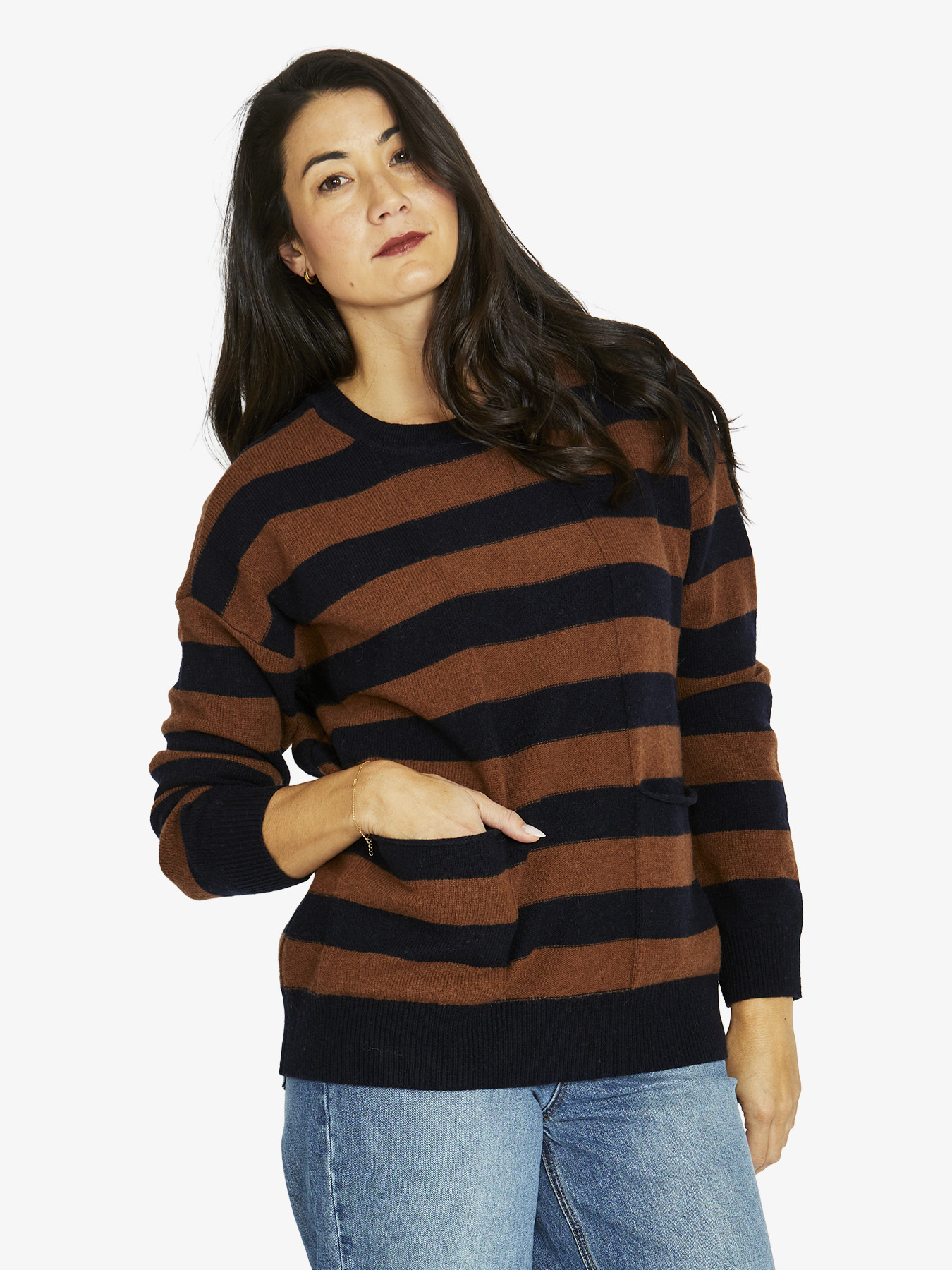 2 PKT Stripe Pullover – Navy Chesnut