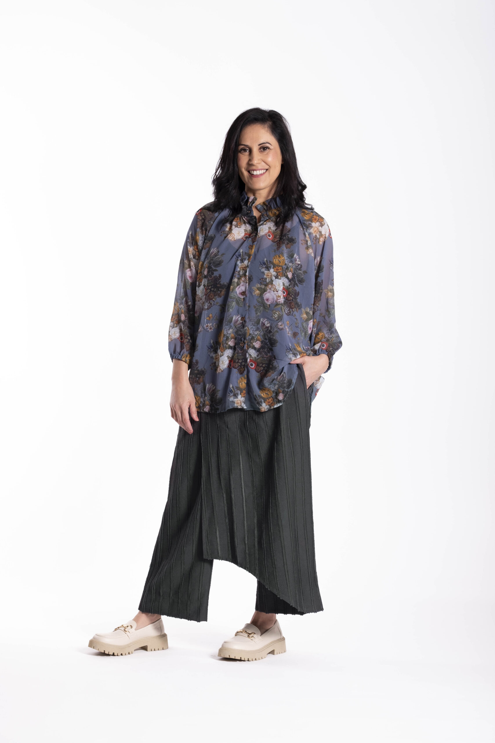 This is a softly structured women’s blouse designed to offer ease and elegance with a flattering, wearable shape. Featuring gentle volume through the body and sleeves, the Delight Blouse drapes beautifully while remaining comfortable for everyday wear. Shown here in Wild Flowers, this expressive floral print adds softness and interest to the silhouette.