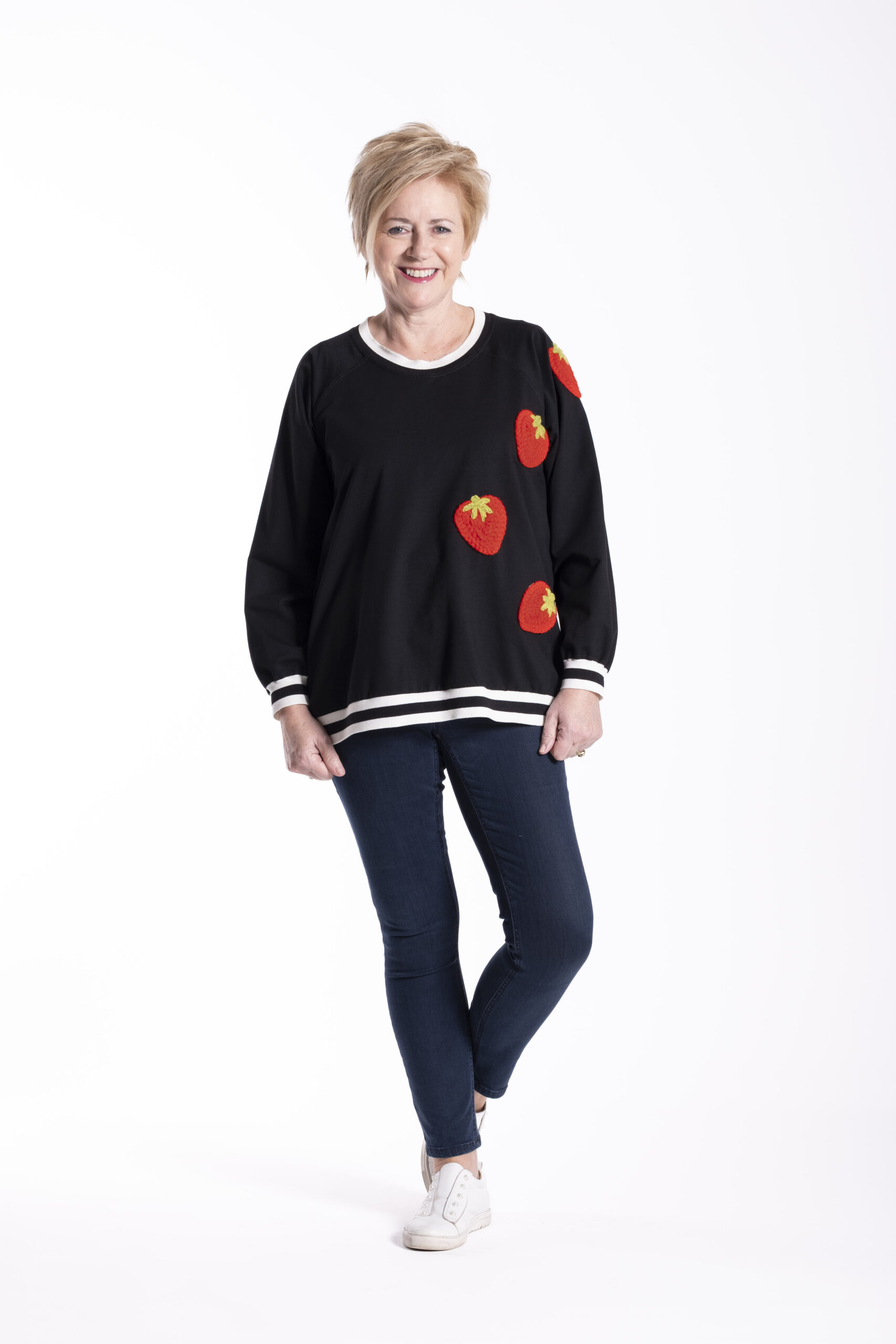 This is a relaxed women’s sweater designed for everyday comfort with a clean, modern feel. Featuring a classic crew neckline and soft volume through the body, the Team Sweater is finished with embroidered Berry Nice strawberry detailing, adding a playful and distinctive touch to the silhouette.