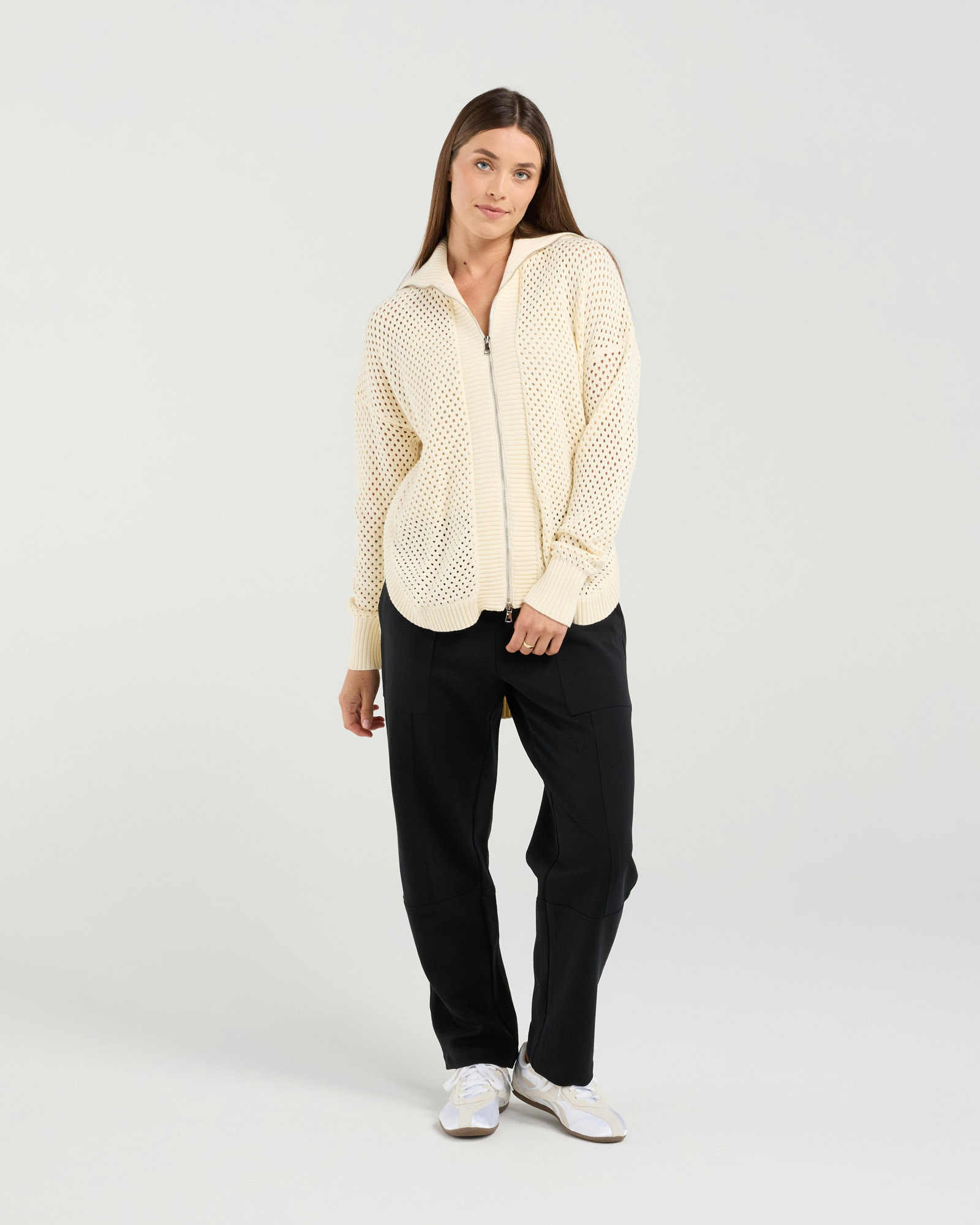 The Lexington Scoop Hem Cardi Blackstone’s essential knit to keep you cozy this season. Crafted from 100% cotton this cardi is the perfect layering companion for when temperatures drop. With its double ended zip you can customise your look to suit your outfit, whether relaxing at home or out running errands. Stay comfortable yet stylish with the Lexington Scoop Hem Knit this winter. Features 100% Cotton fully fashioned knit; Scooped hemline; Double ended zip; Mesh knit with ribbed hems. Model is wearing a size 8