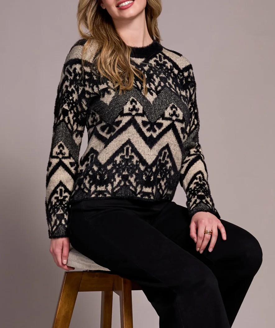 Novelty Mix Long-Sleeve Mock Neck Sweater – Onyx