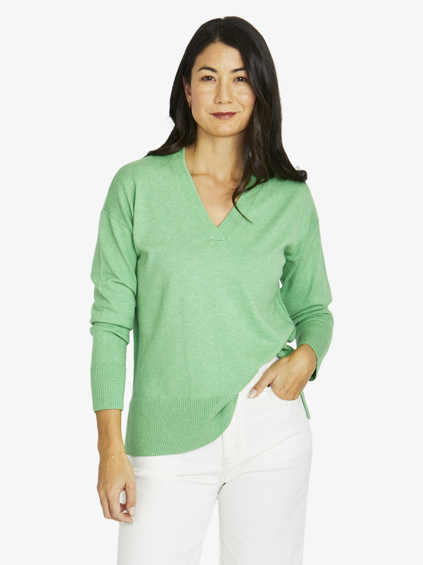 V Neck Pullover – Green Tea