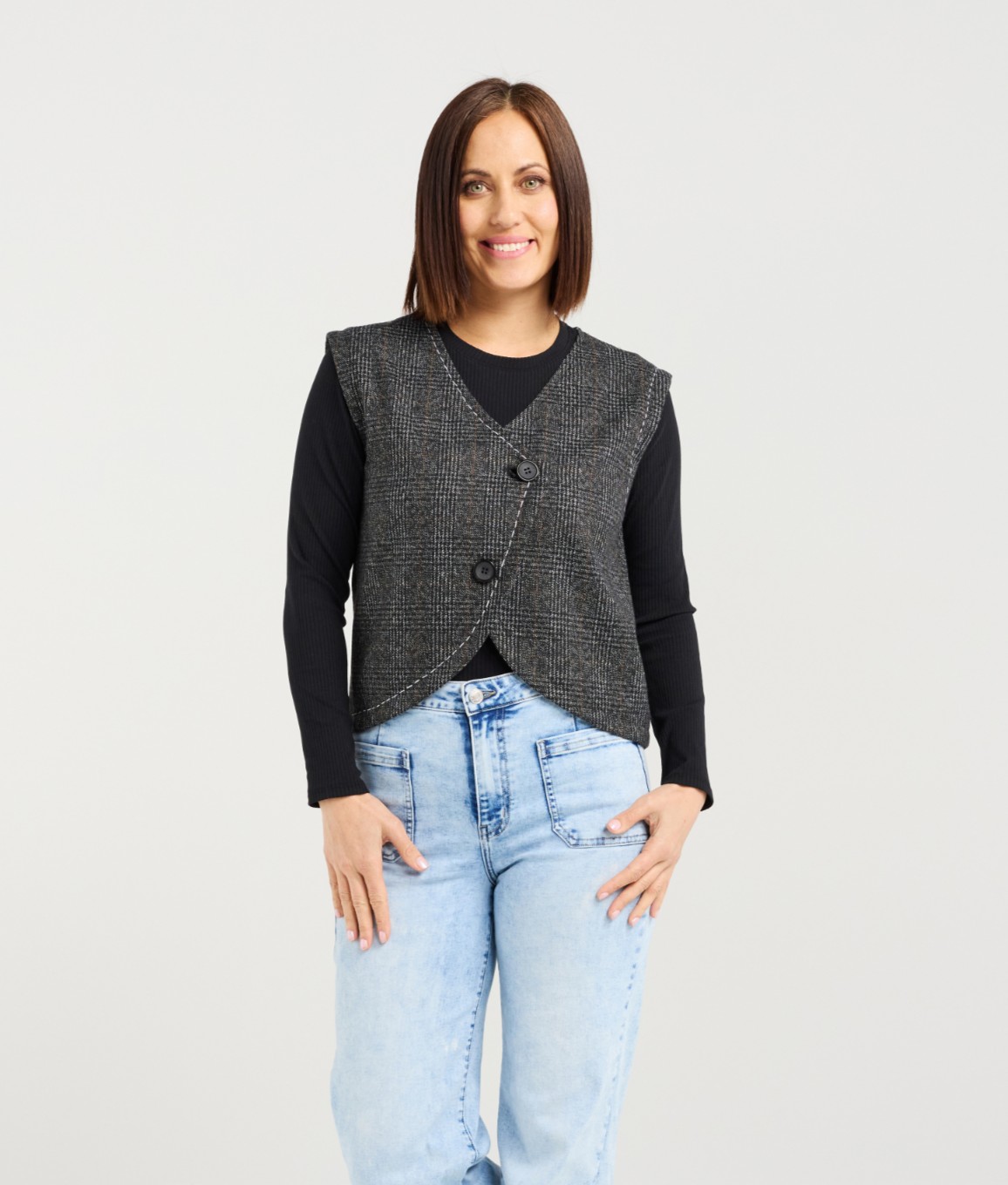 Verona Vest – Stone Plaid