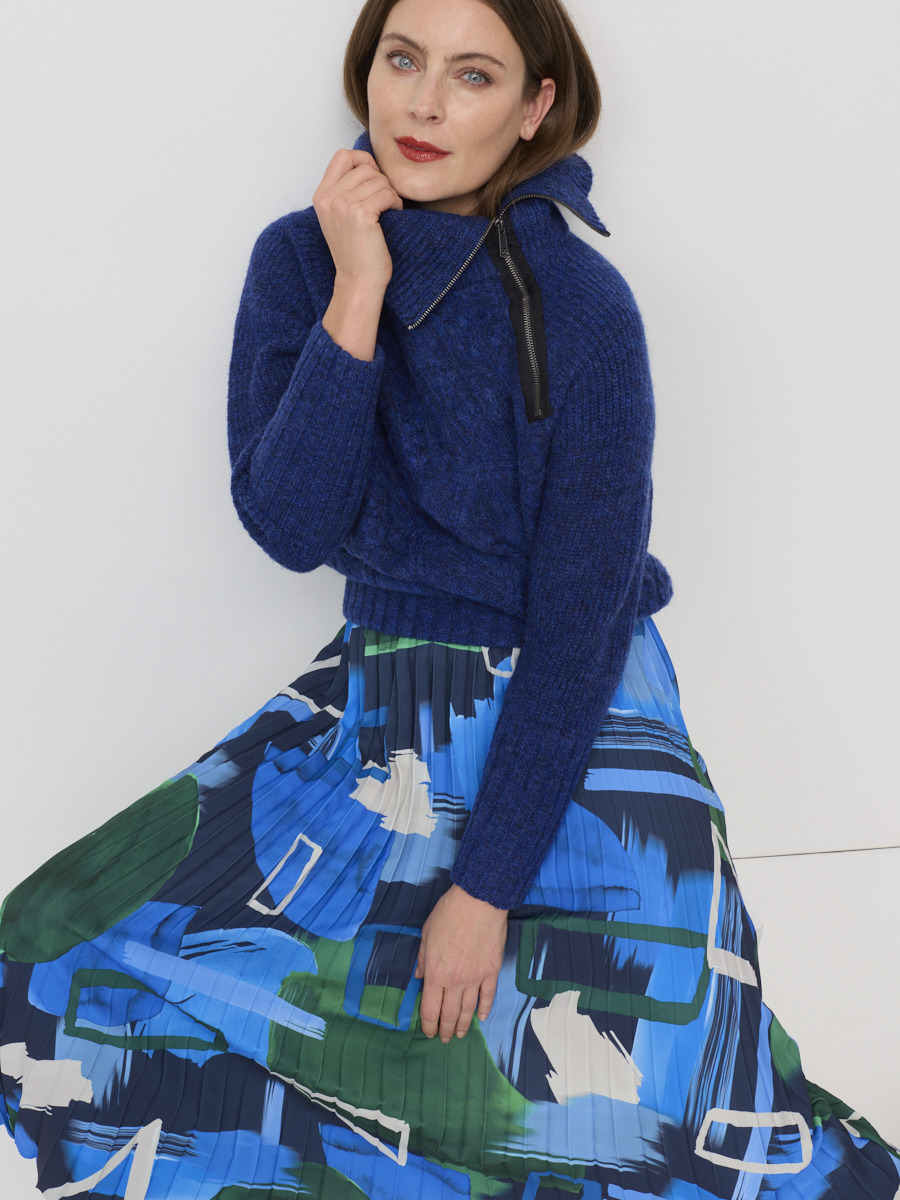 Zip Collar Sweater – Lapis | Deep Pine